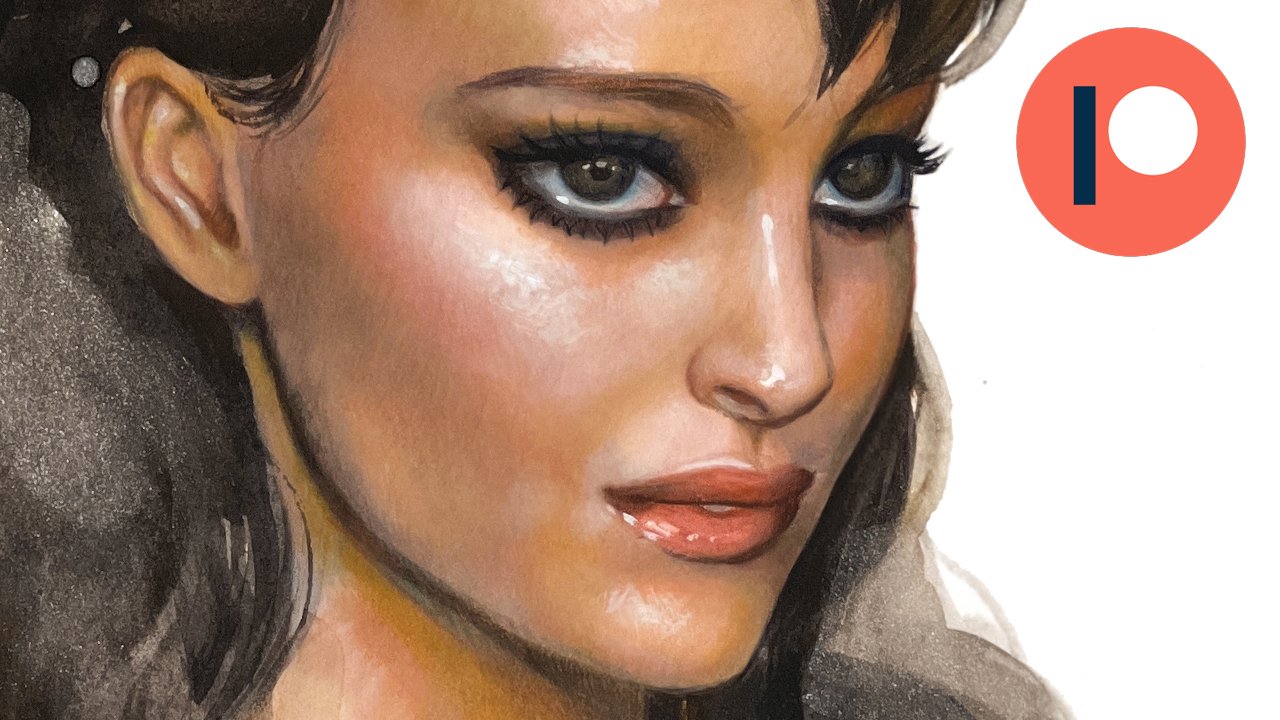Watercolor, Color Pencils & Gouache // Nathalie Portman Portrait